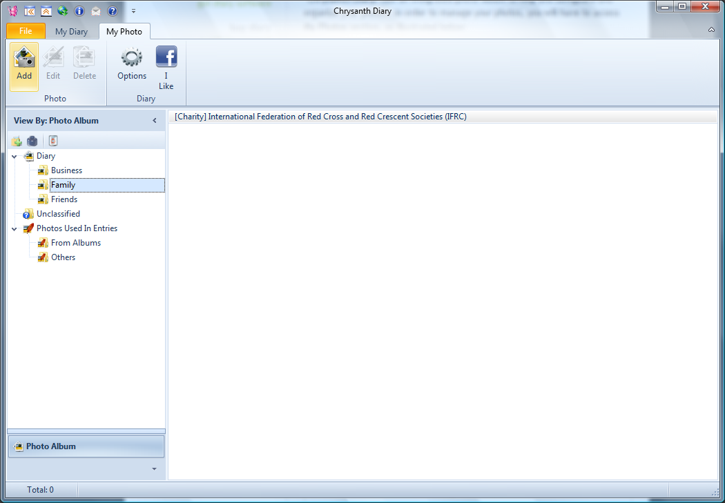 Chrysanth Diary has an integrated photo album to help you safeguard and organize your photos. In order to manage your photos, you will have to access My Photo section, as illustrated below: